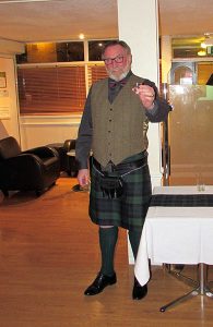 Before the nosh itself the traditional piper played in the Haggis and our own David (Mc Sporran) Henderson addressed the wee beastie and sent it to Haggis heaven with suitable rhyme and a sharp knife.