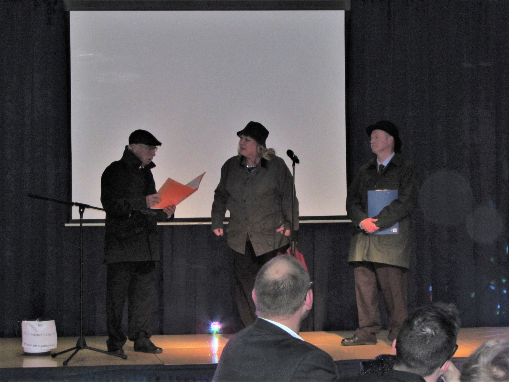 ‘The evening also included a short play ‘The Carol Police’ written by Keith Johnson which gave a light-hearted take on how traditional carols could be viewed by over-zealous officialdom. The play – which has a clever twist at the end – was produced by arrangement with ‘Pint-size plays’.